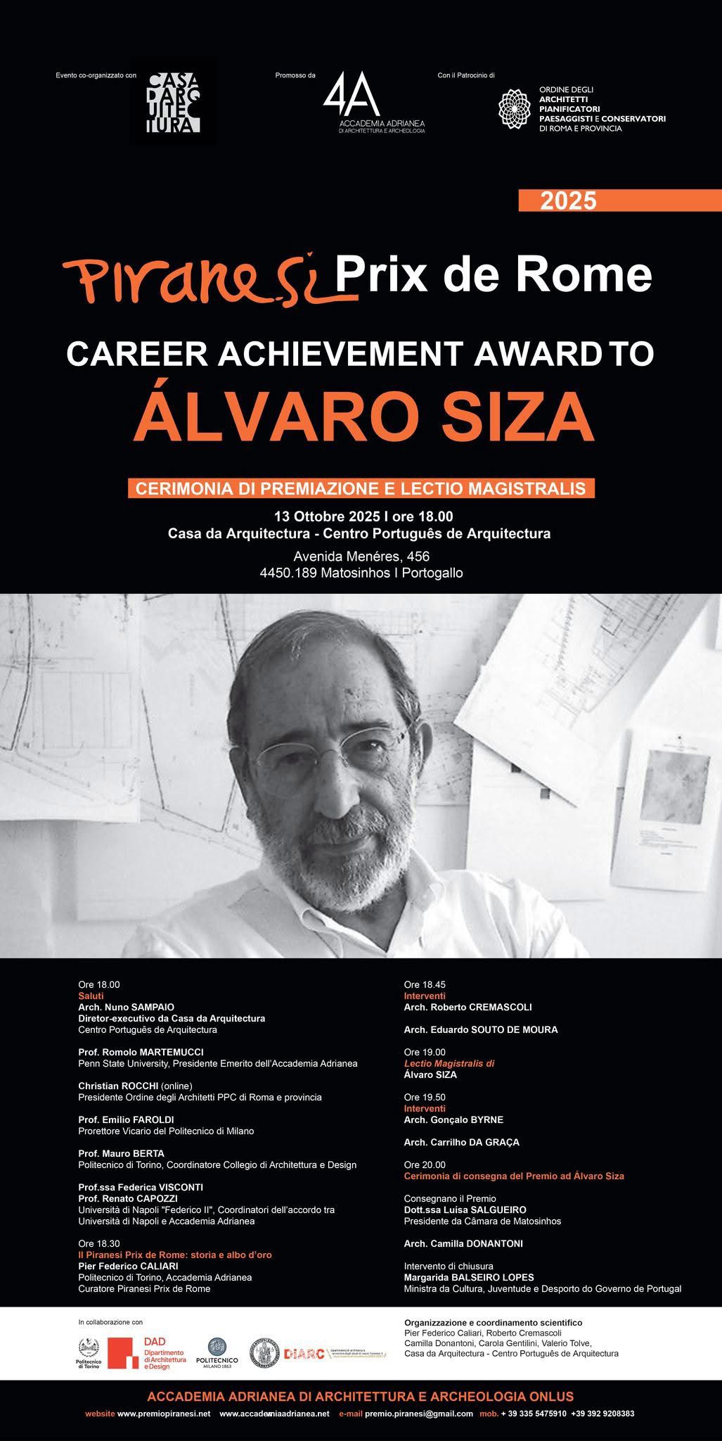 13 ottobre 2025 – Piranesi Prix de Rome “Premiazione Álvaro Siza”