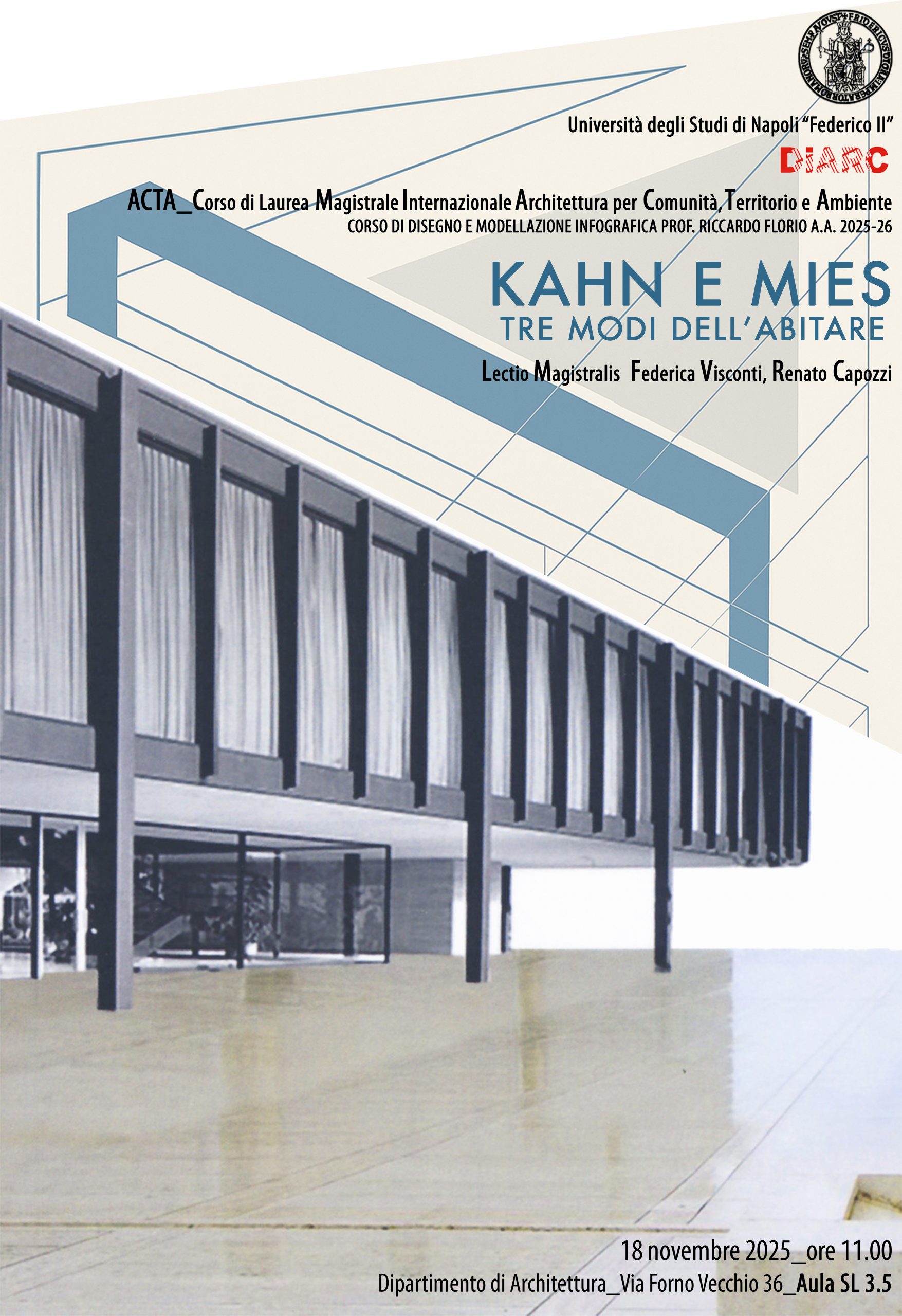Seminario “Kahn e Mies. Tre modi dell’abitare”, di F. Visconti e R. Capozzi, nell’ambito del corso “Disegno e Modellazione Infografica” (prof. R. Florio) del CdS ACTA