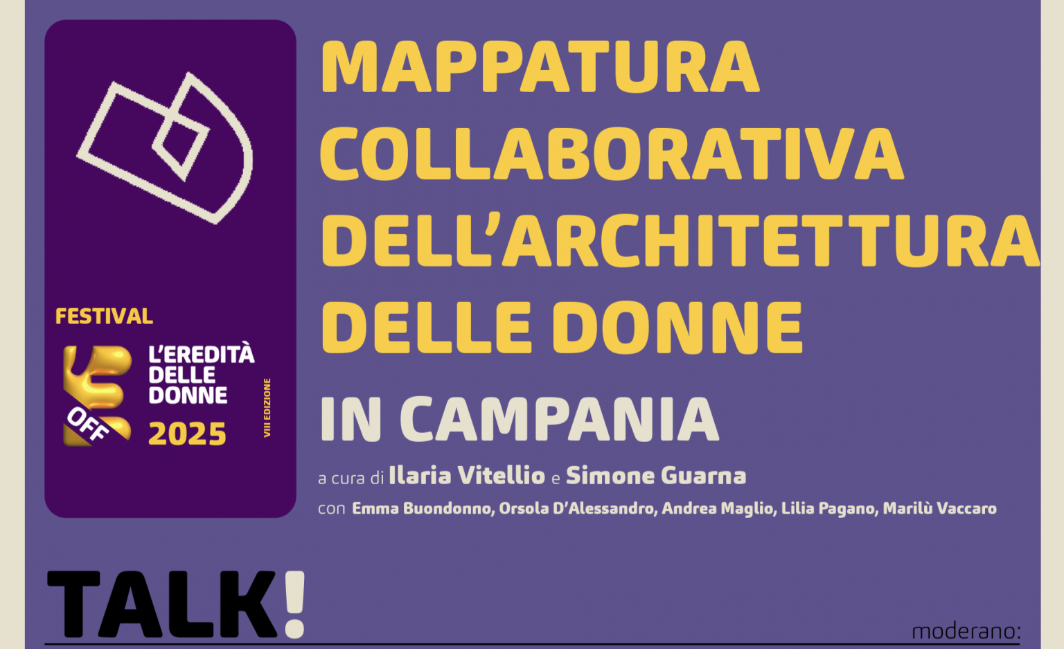 Evento “Mappatura collaborativa dell’architettura delle donne in Campania – EDD25”, giornata organizzata all’interno del calendario OFF del Festival “L’Eredità delle Donne 2025”, a cura di I. Vitellio e S. Guarna