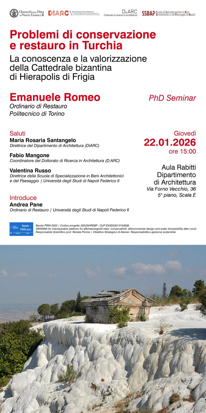 PhD Seminar “Problemi di conservazione e restauro in Turchia. La conoscenza e la valorizzazione della Cattedrale bizantina di Hierapolis di Frigia”, con E. Romeo (Politecnico di Torino)
